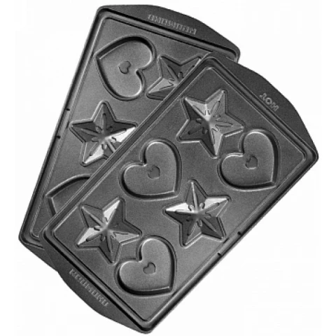 универсальные съемные панели "Сердечки и звёздочки" для любого мультипекаря REDMOND серии 6, панель: выпечка и печенье, порций: 6, антипригарное покрытие, 13.3x25x1.4 см