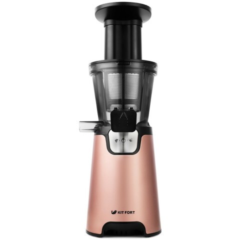 Бренд: Kitfortвертикальная шнековая соковыжималка, количество шнеков: 1, мощность 150 Вт, стакан для сока в комплекте, подача сока сразу в стакан, противокапельная система, автоматический выброс мякоти, корпус из пластика, регулировка количества мякоти