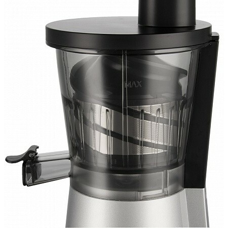 мощность 400 Вт, объём резервуара для сока 600 мл, защита от случайного включения, от перегрузки, от перегрева, от поражения током, максимальная скорость вращения 55 об/мин, материал корпуса пластик