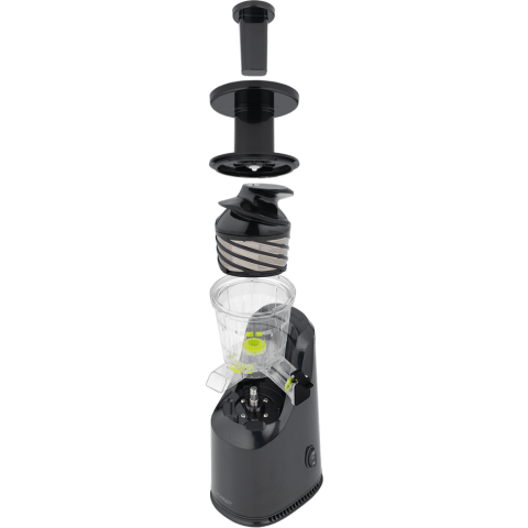 Бренд: Scarlettвертикальная шнековая соковыжималка, количество шнеков: 1, мощность 150 Вт, стакан для сока в комплекте, подача сока сразу в стакан, противокапельная система, автоматический выброс мякоти, корпус из пластика, возможность загрузки целых плодов