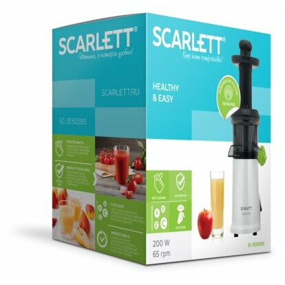 вертикальная шнековая соковыжималка, количество шнеков: 1, мощность 200 Вт, стакан для сока в комплекте, подача сока сразу в стакан