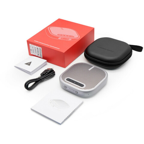 портативный спикерфон, подключение: Bluetooth, USB, диапазон захвата микрофона: 6 м, всенаправленный, 88 дБ, встроенный аккумулятор: 6500 мАч, до 24 часов работы