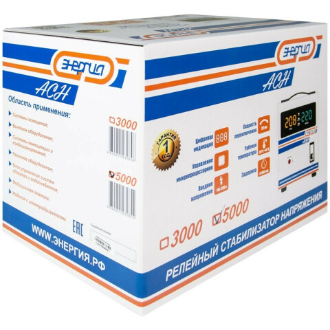 Бренд: Энергиярелейный стабилизатор, входное напряжение 140-260 В, выходное напряжение 202-238 В, дисплей