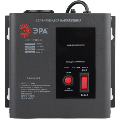 Бренд: ЭРАрелейный стабилизатор, мощность 1000 Вт, входное напряжение 140-260 В, выходное напряжение 220 В