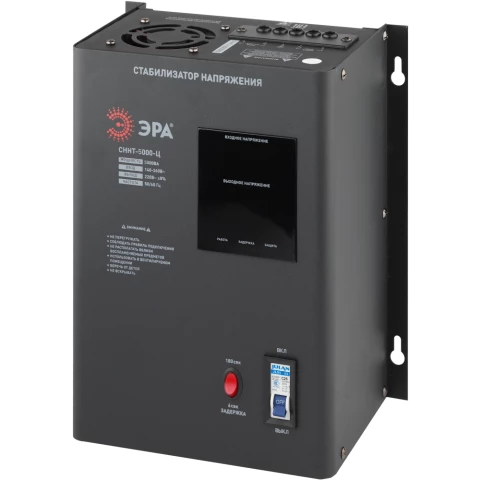 Бренд: ЭРАрелейный стабилизатор, мощность 5000 Вт, входное напряжение 140-260 В, выходное напряжение 220 В, дисплей