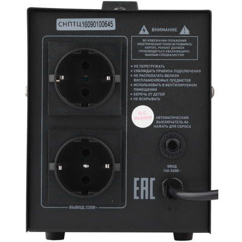релейный стабилизатор, мощность 1000 Вт, входное напряжение 140-260 В, выходное напряжение 220 В