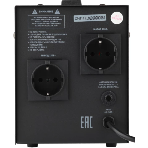 релейный стабилизатор, мощность 2000 Вт, входное напряжение 140-260 В, выходное напряжение 220 В, дисплей