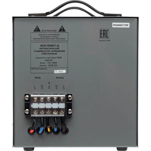 релейный стабилизатор, мощность 5000 Вт, входное напряжение 140-260 В, выходное напряжение 220 В, дисплей