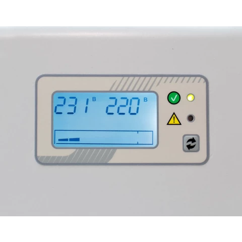инверторный стабилизатор, мощность 1500 Вт, входное напряжение 165-310 В, выходное напряжение 220-230 В, дисплей