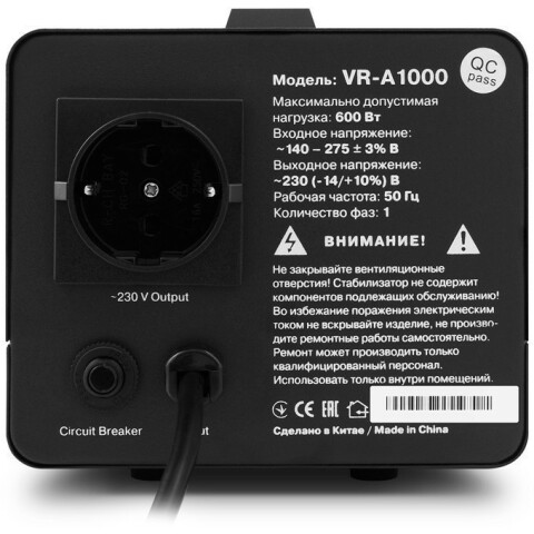 релейный стабилизатор, мощность 600 Вт, входное напряжение 140-275 В, выходное напряжение 230 В, дисплей