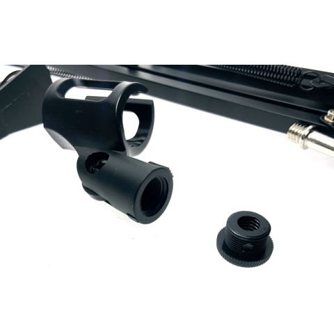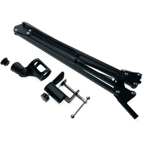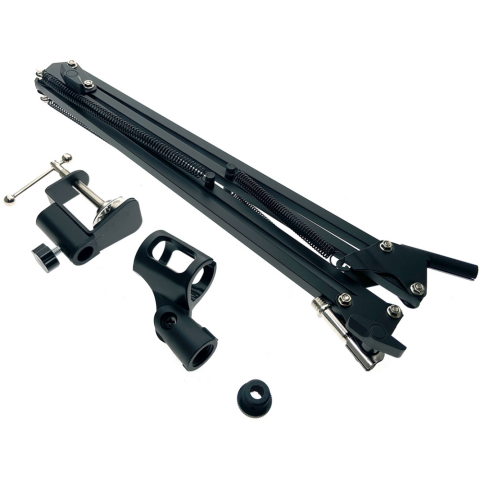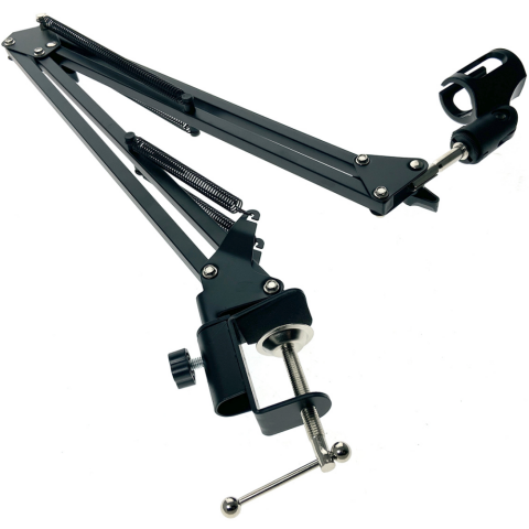 стойка микрофона, материал: алюминий/пластик, струбцина, длина плеча: 330 мм, толщина поверхности для зажима 42 мм, резьба для крепления микрофона: 5/8"
