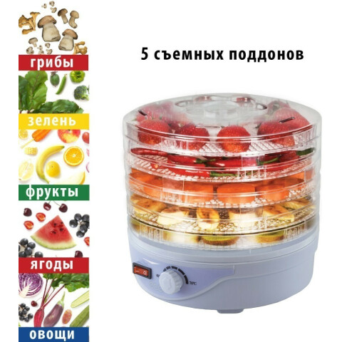 Бренд: ECONконвективная сушилка, механическое управление, мощность 245 Вт, число поддонов: 5, регулировка температуры сушки