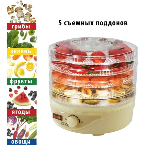 конвективная сушилка, механическое управление, мощность 245 Вт, число поддонов: 5, регулировка температуры сушки