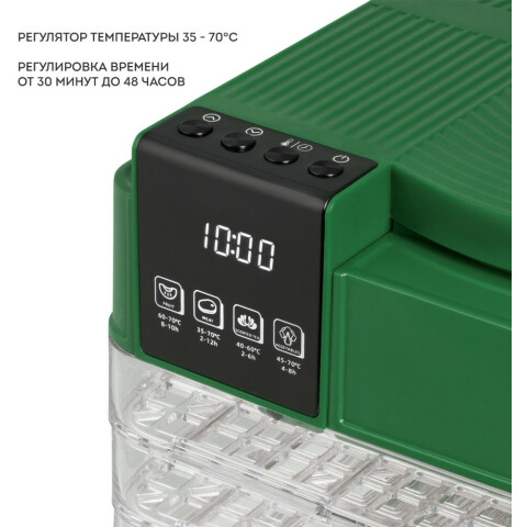 Бренд: Galaxyконвективная сушилка, электронное управление, мощность 450 Вт, число поддонов: 5, регулировка температуры сушки