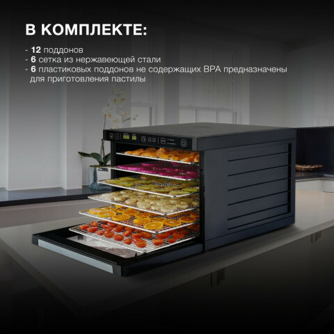 конвективная сушилка, электронное управление, мощность 1000 Вт, число поддонов: 12, регулировка температуры сушки