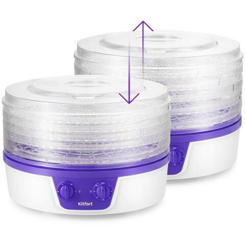 Бренд: Kitfortконвективная сушилка, механическое управление, мощность 245 Вт, число поддонов: 5, регулировка температуры сушки