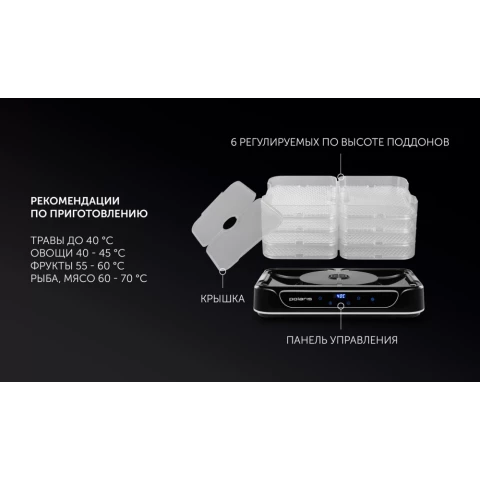 конвективная сушилка, электронное управление, мощность 550 Вт, число поддонов: 4, регулировка температуры сушки