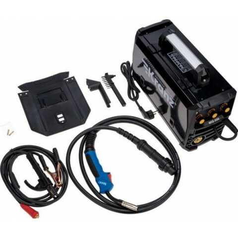 сварочный инвертор, типы сварки: MMA, MIG/MAG, сварочный ток (MMA): 30-200 А, напряжение на входе: 220 В, диаметр электрода: 2-5 мм
