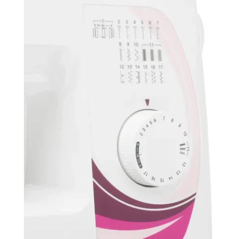 электромеханическое управление, петля-полуавтомат, ротационный горизонтальный челнок, 17 швейных операций, макс. длина стежка: 4 мм, освещение, кнопка реверса