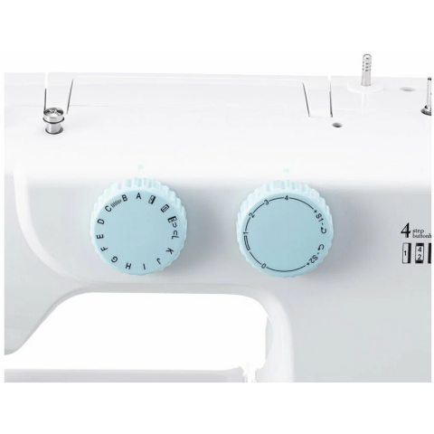 электромеханическое управление, петля-полуавтомат, качающийся челнок, 37 швейных операций, макс. длина стежка: 4 мм, освещение, кнопка реверса