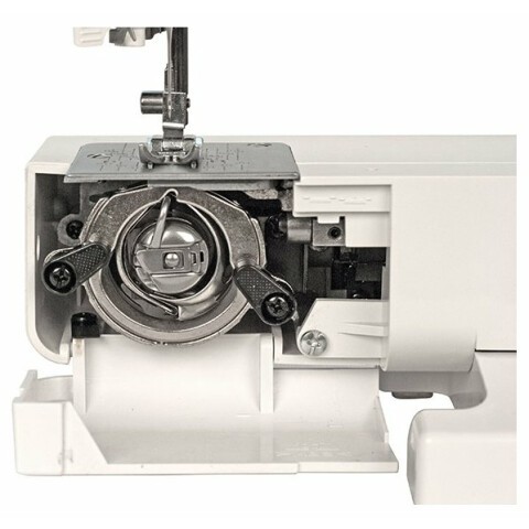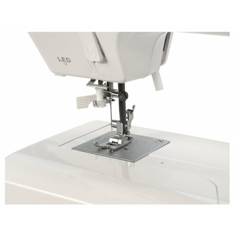 электромеханическое управление, петля-полуавтомат, качающийся челнок, 25 швейных операций, макс. ширина строчки: 4 мм, макс. длина стежка: 4 мм, освещение, кнопка реверса