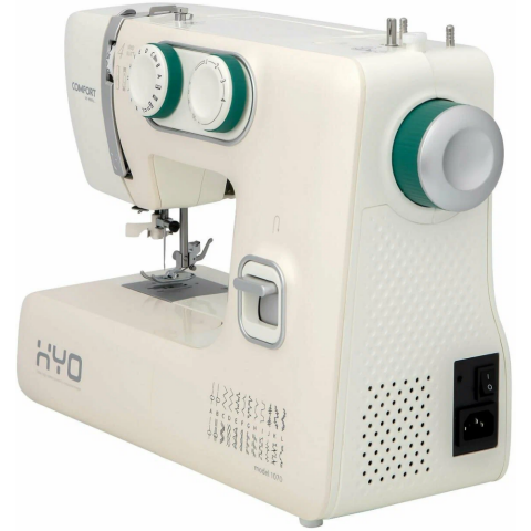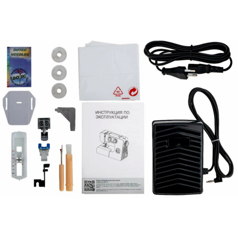 электромеханическое управление, петля-полуавтомат, ротационный вертикальный челнок, 24 швейных операций, макс. длина стежка: 4 мм, освещение