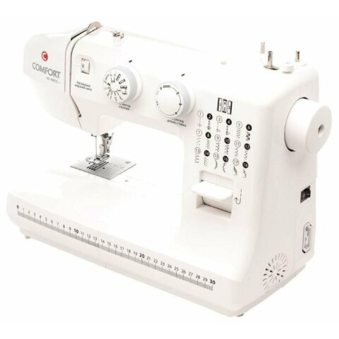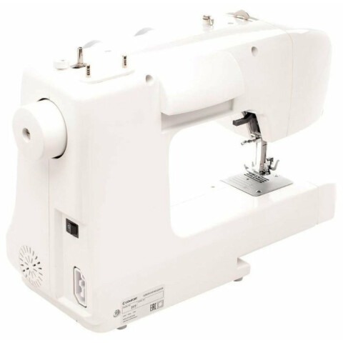 электромеханическое управление, петля-полуавтомат, 19 швейных операций, макс. ширина строчки: 4 мм, макс. длина стежка: 5 мм, освещение, кнопка реверса