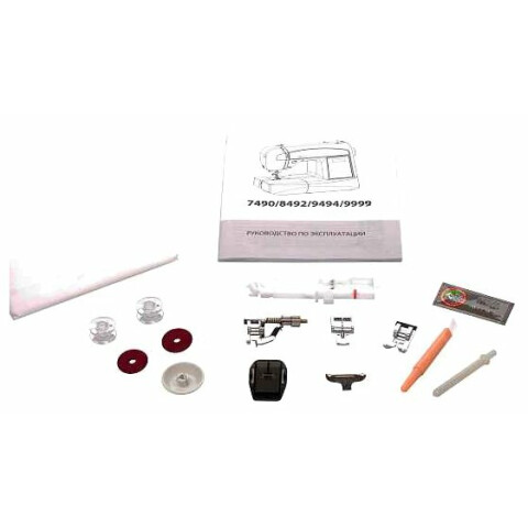 компьютерное управление, петля-автомат, качающийся челнок, 60 швейных операций, макс. ширина строчки: 7 мм, макс. длина стежка: 5 мм, освещение, кнопка реверса