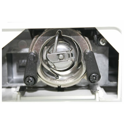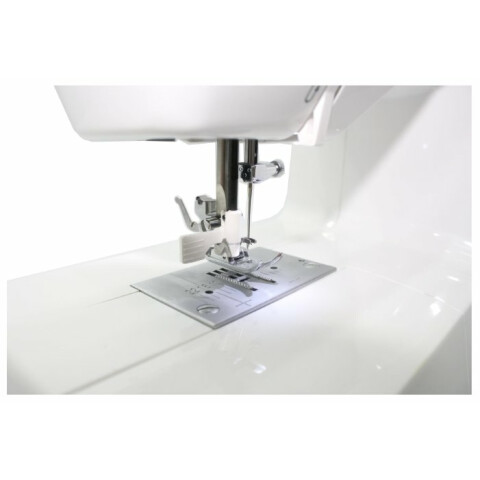 электромеханическое управление, петля-полуавтомат, качающийся челнок, 9 швейных операций, макс. ширина строчки: 5 мм, макс. длина стежка: 4 мм, освещение, кнопка реверса