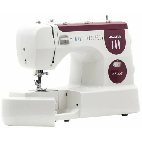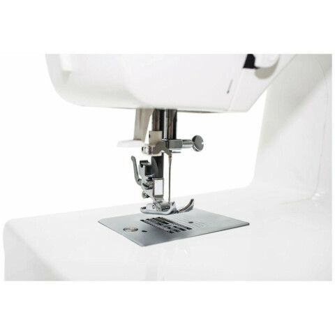 электромеханическое управление, петля-полуавтомат, качающийся челнок, 11 швейных операций, макс. ширина строчки: 5 мм, макс. длина стежка: 4 мм, освещение, кнопка реверса