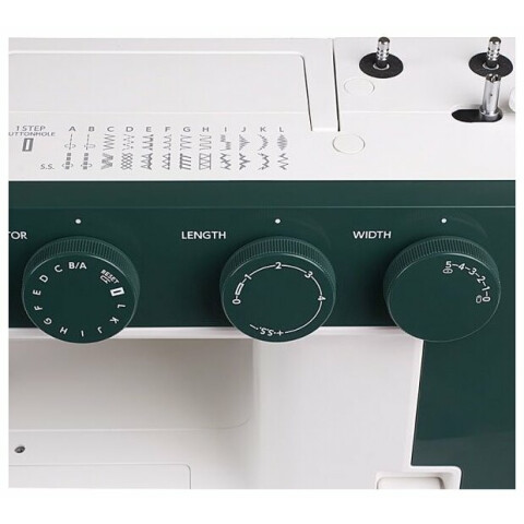 электромеханическое управление, петля-автомат, качающийся челнок, 25 швейных операций, макс. ширина строчки: 5 мм, макс. длина стежка: 4 мм, освещение, кнопка реверса