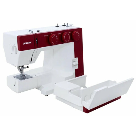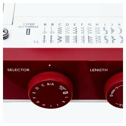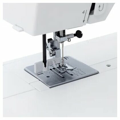 электромеханическое управление, петля-автомат, качающийся челнок, 25 швейных операций, макс. ширина строчки: 5 мм, макс. длина стежка: 4 мм, освещение, кнопка реверса