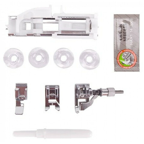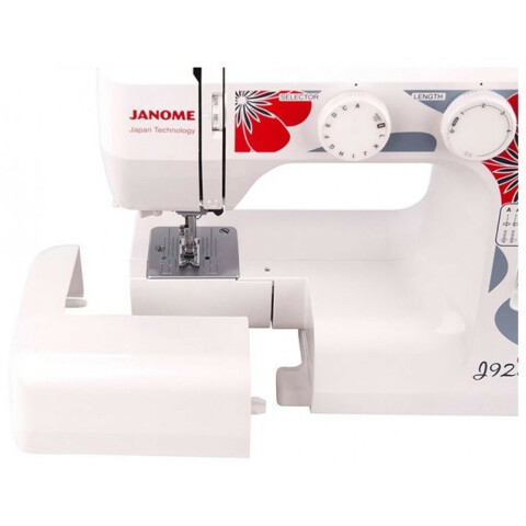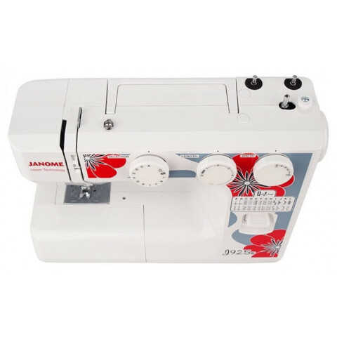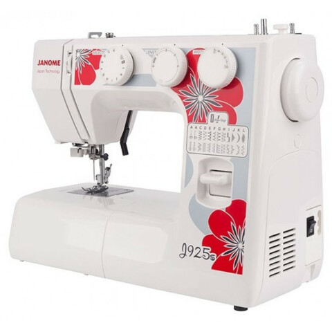 электромеханическое управление, петля-автомат, качающийся челнок, 25 швейных операций, макс. ширина строчки: 5 мм, макс. длина стежка: 4 мм, освещение, кнопка реверса