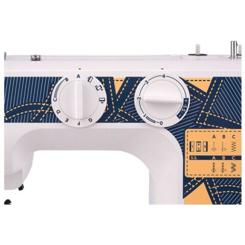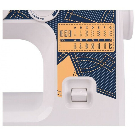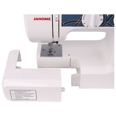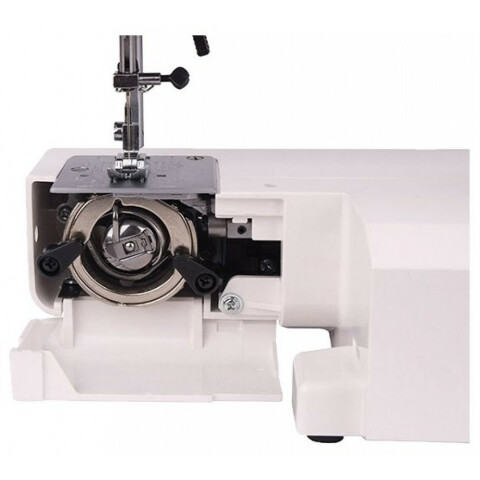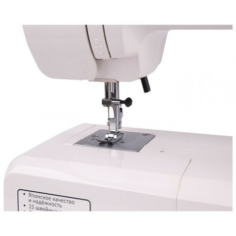 электромеханическое управление, петля-полуавтомат, качающийся челнок, 15 швейных операций, макс. ширина строчки: 5 мм, макс. длина стежка: 4 мм, освещение, кнопка реверса