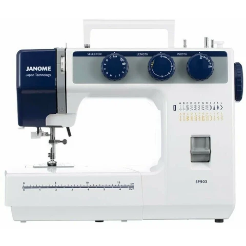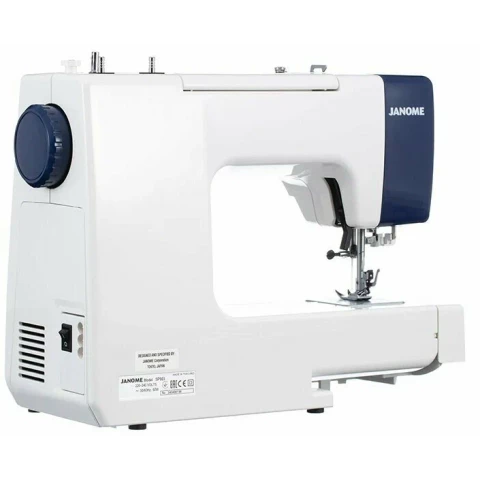 электромеханическое управление, петля-автомат, ротационный вертикальный челнок, 25 швейных операций, макс. длина стежка: 4 мм, освещение