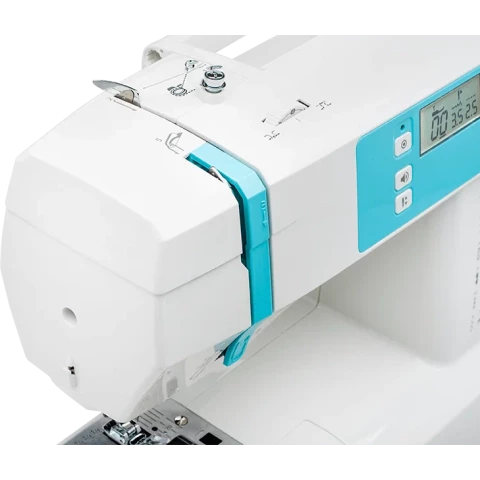 электронное управление, петля-автомат, ротационный горизонтальный челнок, 60 швейных операций, макс. длина стежка: 4.5 мм, освещение, кнопка реверса