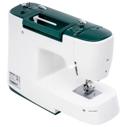 электромеханическое управление, петля-автомат, качающийся челнок, 23 швейных операций, макс. ширина строчки: 5 мм, макс. длина стежка: 4 мм, освещение, кнопка реверса