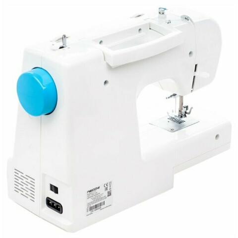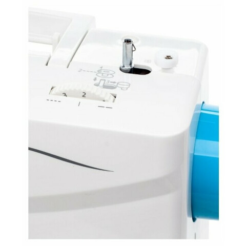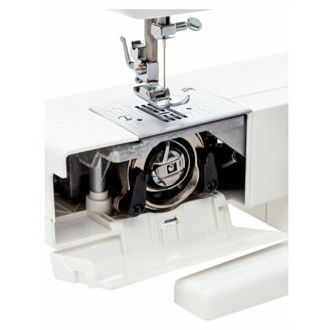 электромеханическое управление, ротационный вертикальный челнок, 13 швейных операций, макс. ширина строчки: 5 мм, макс. длина стежка: 4 мм, освещение, кнопка реверса