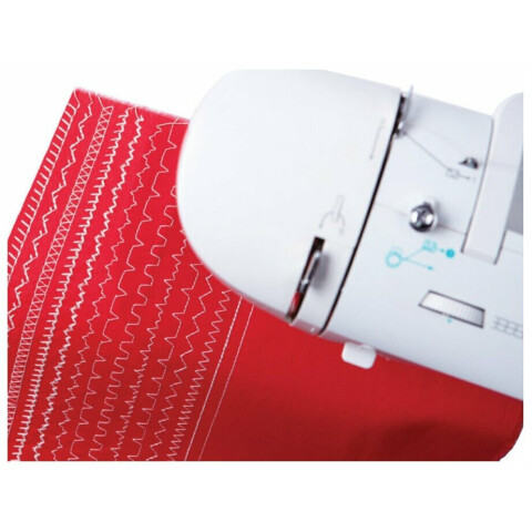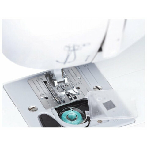 электромеханическое управление, петля-автомат, ротационный горизонтальный челнок, 32 швейных операций, макс. ширина строчки: 6 мм, макс. длина стежка: 4 мм, освещение, кнопка реверса