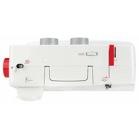 электромеханическое управление, петля-полуавтомат, качающийся челнок, 13 швейных операций, макс. ширина строчки: 5 мм, макс. длина стежка: 4 мм, освещение, кнопка реверса