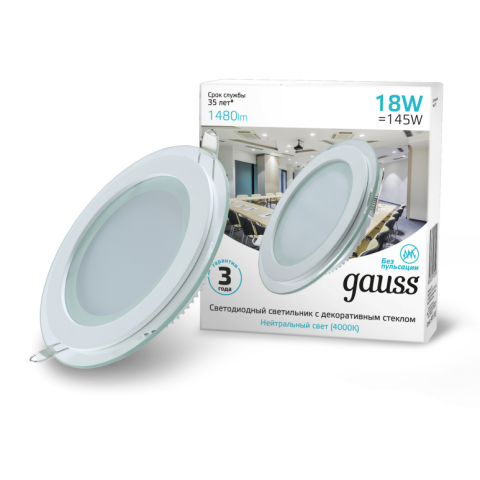 | потолочный светильник, встраиваемый, мощность 18 Вт, цветовая температура 4000 K, световой поток 1480 Лм, IP20 | 280 смн. |
