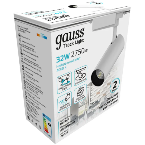трековый светильник, на шину, мощность 32 Вт, цветовая температура 4000 K, световой поток 2750 Лм, IP20