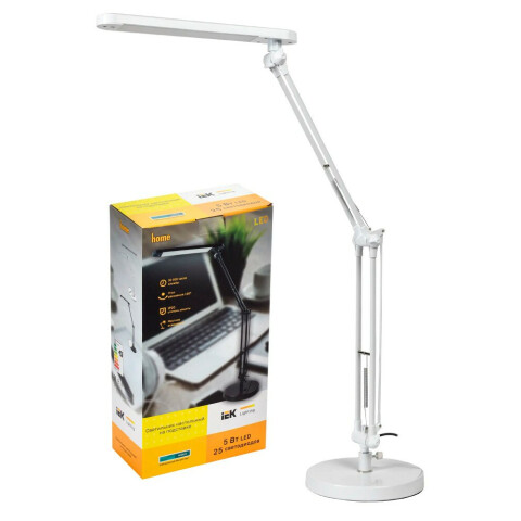 Бренд: IEKнастольный светильник, мощность 5 Вт, цветовая температура 4000 K, световой поток 350 Лм, регулировка яркости, IP20