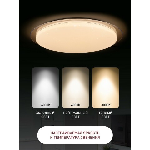 настенно-потолочный светильник, накладной, мощность 70 Вт, цветовая температура 6500 K, световой поток 5600 Лм, регулировка яркости, IP20