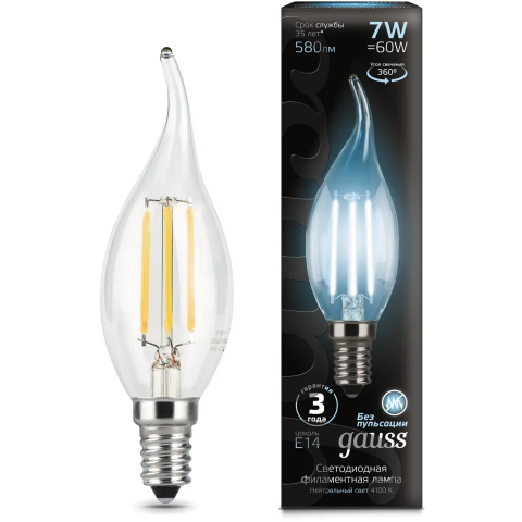 цоколь E14, мощность 7 Вт, нейтральный белый цвет, цветовая температура 4100 K, световой поток 580 Лм, 220 В, до 35000 ч работы, 10 шт.