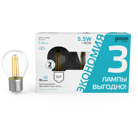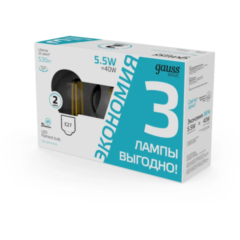 Светодиодная лампочка Gauss 1051226T (5.5 Вт, E27) 3 шт.