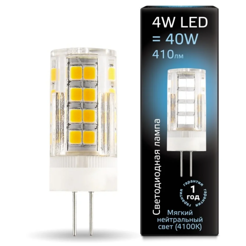 цоколь G4, мощность 4 Вт, нейтральный белый цвет, цветовая температура 4100 K, световой поток 410 Лм, 220 В, 10 шт.