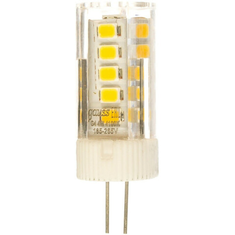 цоколь G4, мощность 4 Вт, нейтральный белый цвет, цветовая температура 4100 K, световой поток 410 Лм, 1 шт.