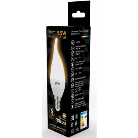 Светодиодная лампочка Gauss Candle Tailed 3000K (9.5 Вт, E14)