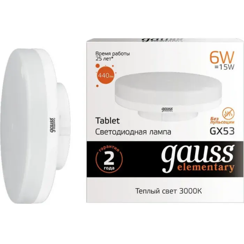 Светодиодная лампочка Gauss Elementary 2700K (6 Вт, GX53) 10 шт.